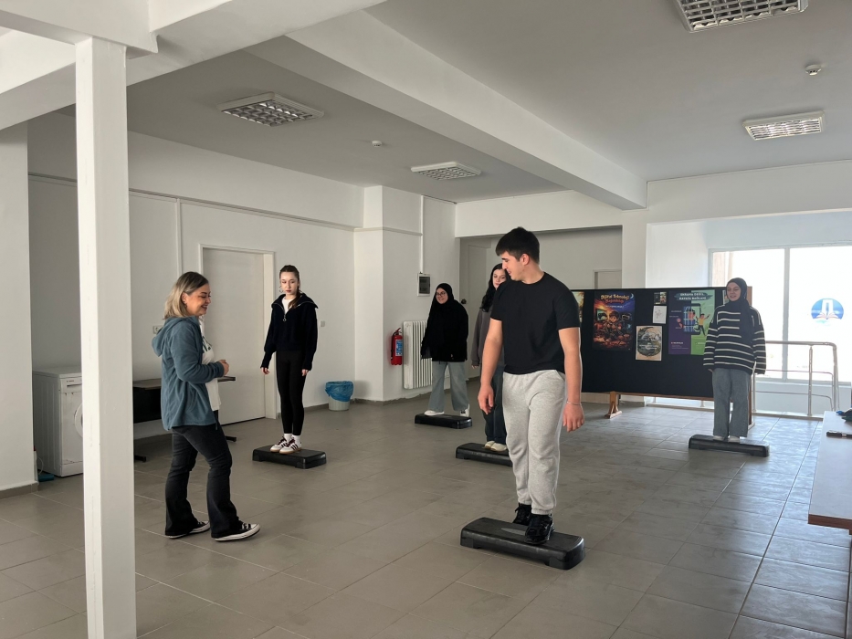 Etkinlik süresince teknoloji kullanımının fiziksel ve psikososyal etkilerine dikkat çekildi. Programın son bölümünde ise okulumuz öğretim görevlilerinden Fizyoterapi Uzmanı Öğr. Gör. Sezen UYANIK tarafından, uzun süreli teknoloji kullanımına bağlı olarak gelişebilecek kas-iskelet sistemi sorunlarını önlemeye yönelik egzersiz uygulamaları yaptırıldı.