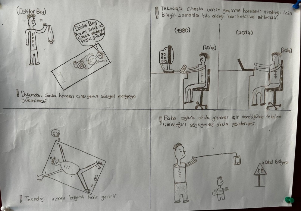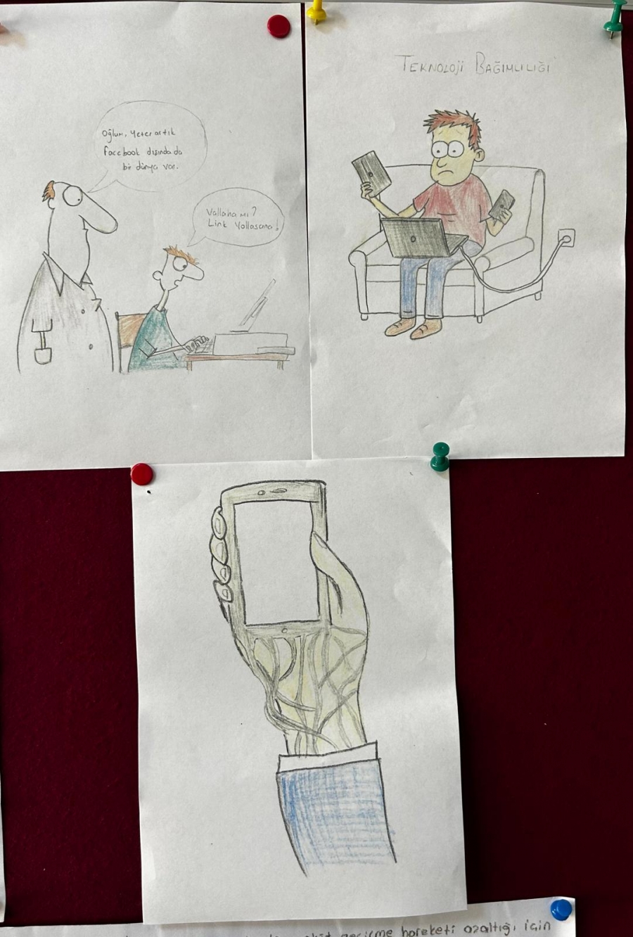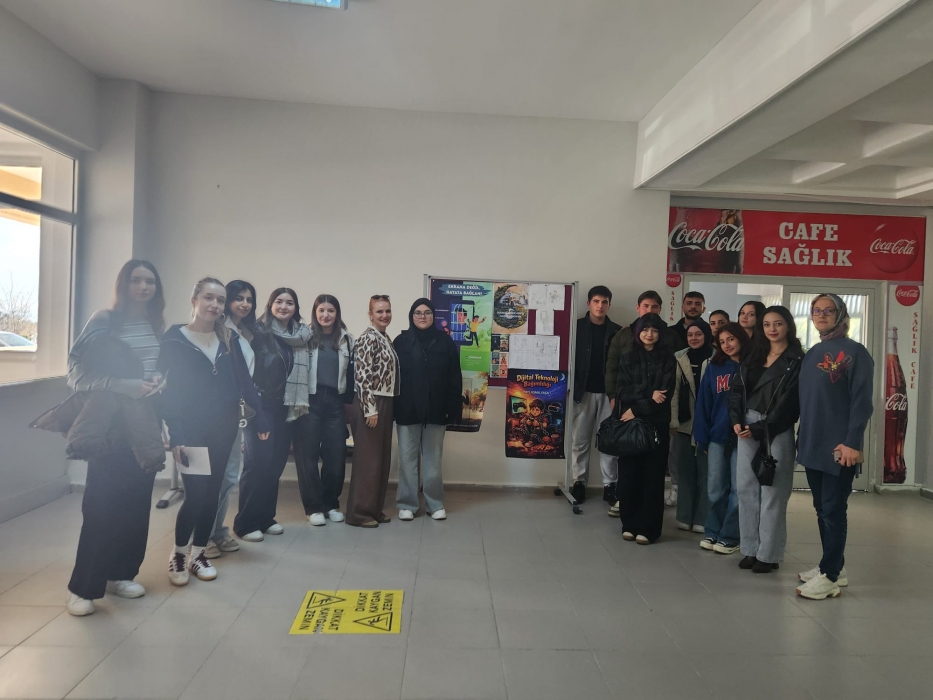 Eczane Hizmetleri Bölümü Teknoloji Bağımlılığı dersi kapsamında, teknoloji bağımlılığı konusuna dikkat çekmek amacıyla Dr. Öğr. Üyesi Özge Nur TÜRKERİ’nin yürütücülüğünde bir etkinlik düzenlendi. Etkinlik kapsamında öğrenciler tarafından hazırlanan poster ve karikatürler okul binasında sergilendi, teknoloji bağımlılığına ilişkin bilgilendirici broşürler katılımcılara dağıtıldı.